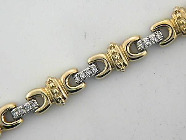 14K WHITE AND YELLOW GOLD LADIES BRACELET WITH .75CT ROUND SHAPE DIAMOND.