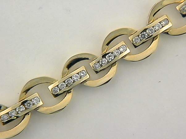 14K WHITE AND YELLOW GOLD LADIES BRACELET WITH 2.65 ROUND SHAPE DIAMOND.