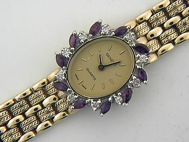 14K YELLOW GOLD WATCH WITH .70CT ROUND SHAPE DIAMOND & 1.30CT MARQUISE SHAPE RUBY.