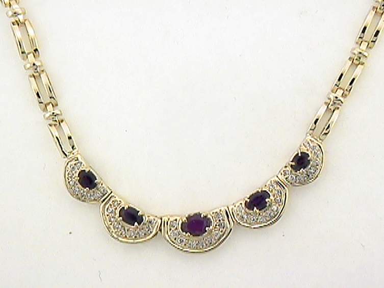14K YELLOW GOLD LADIES NECKLACE WITH 2.50CT OVAL SHAPE RUBY AND .80CT ROUND SHAPE DIAMOND.
