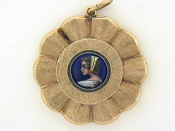 14K YELLOW GOLD ANTIQUE PENDANT WITH PORCELAIN IN THE MIDDLE