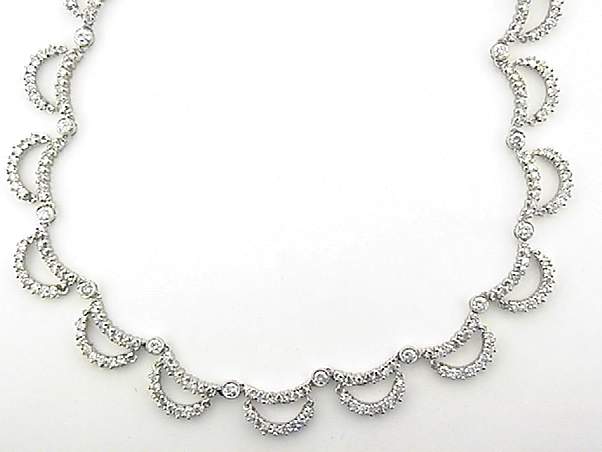 14K WHITE GOLD NECKLACE WITH 12.50CT ROUND SHAPE DIAMOND SET IN BEZEL AND PRONGS SETTING.