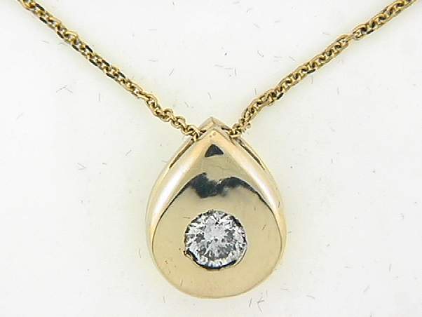 14K YELLOW GOLD PENDANT WITH .60CT ROUND SHAPED DIAMOND SET IN BEZEL SETTING.