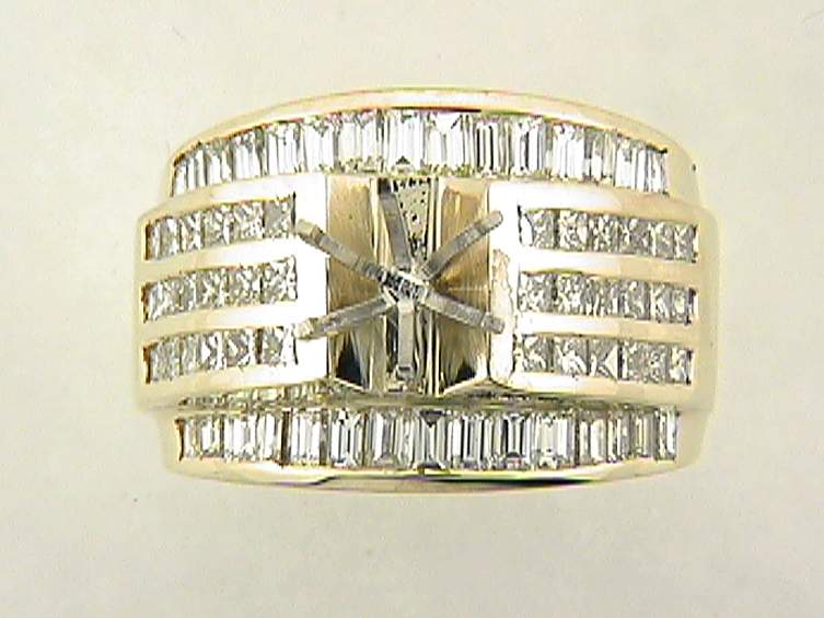 14K YELLOW GOLD RING WITH 1.70CT BAGUETTE DIAMOND, AND 1.50CT PRINCESS CUT DIAMOND SET IN CHANNEL SETTING.