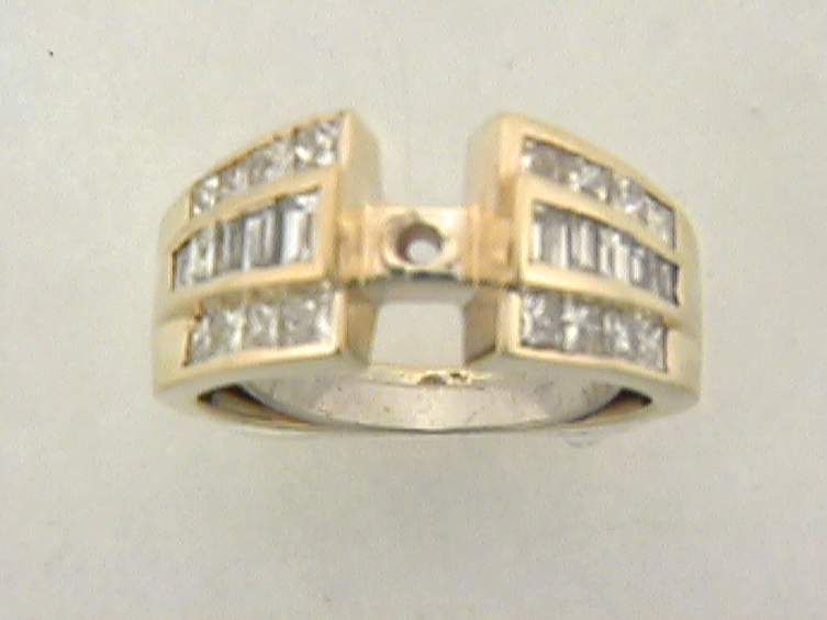 14K YELLOW GOLD RING WITH .90CT BAGUETTE,1.CT PRINCESS CUT DIAMOND SET IN CHANNEL SETTING.