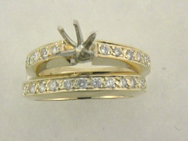 14K YELLOW GOLD ENGAGEMENT SET WITH .80CT ROUND DIAMOND SET IN PAVE’ SETTING.