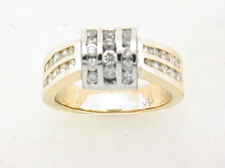 14K WHITE AND YELLOW GOLD RING WITH 1.40CT ROUND SHAPE DIAMOND SET IN CHANNEL SET SETTING.,