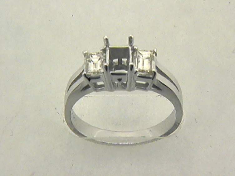 14K WHITE GOLD RING WITH 2PC, EMERALD CUT DIAMOND .60CT SET IN FOUR PRONGS SETTING.