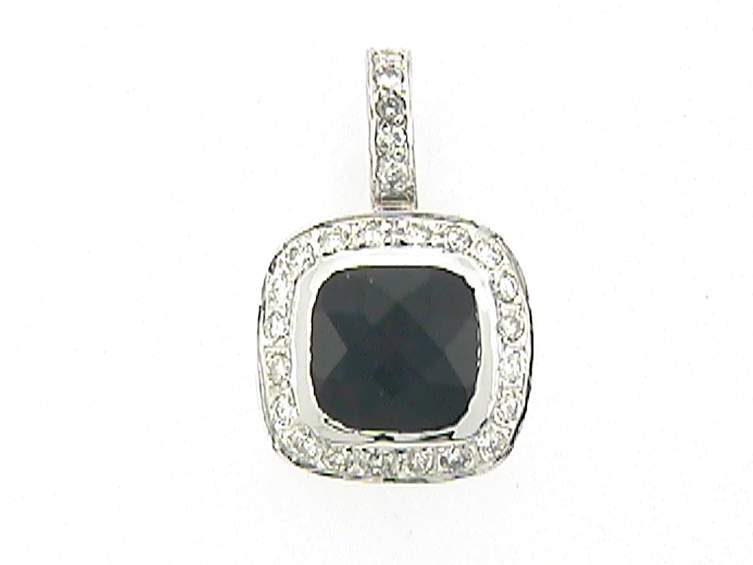 14K WHITE GOLD PENDANT WITH .75CT ROUND DIAMOND SET IN PAVE’ SETTING, CENTER OF 5.11CT GARNET