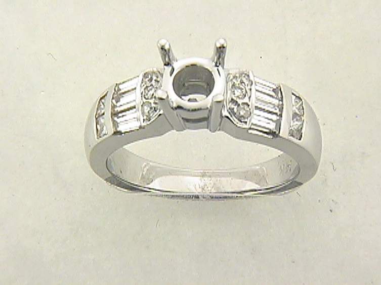 14K WHITE GOLD RING WITH .25CT ROUND SHAPE DIAMOND, .50CT BAGUETTE AND .20CT PRINCESS CUT DIAMOND SET IN CHANNEL SETTING.
