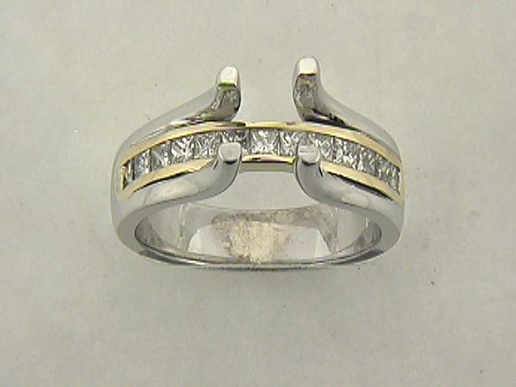 14K WHITE AND YELLOW GOLD RING WITH .75CT PRINCESS CUT DIAMOND SET IN CHANNEL SETTING.