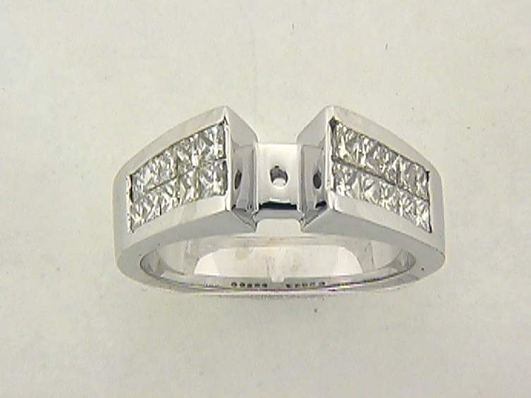 18K WHITE GOLD RING WITH 1.20CT PRINCESS CUT DIAMOND SET IN INVISIBLE SETTING.
