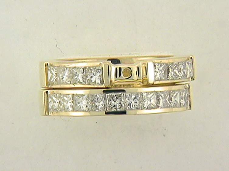 18K YELLOW GOLD ENGAGEMENT RING WITH 2.10CT PRINCESS CUT DIAMOND SET IN INVISIBLE SETTING.