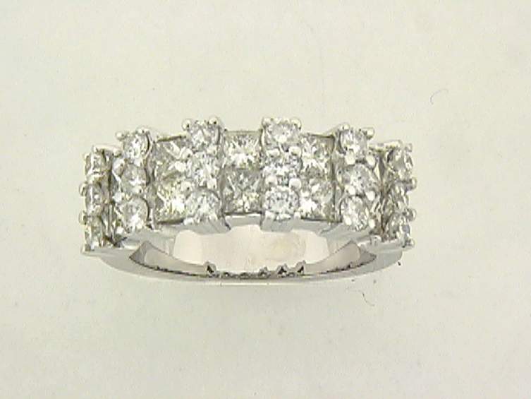 14K WHITE GOLD RING WITH 1.75CT PRINCESS CUT DIAMOND SET IN CHANNEL SETTING, AND 1.20CT ROUND SHAPE DIAMOND.