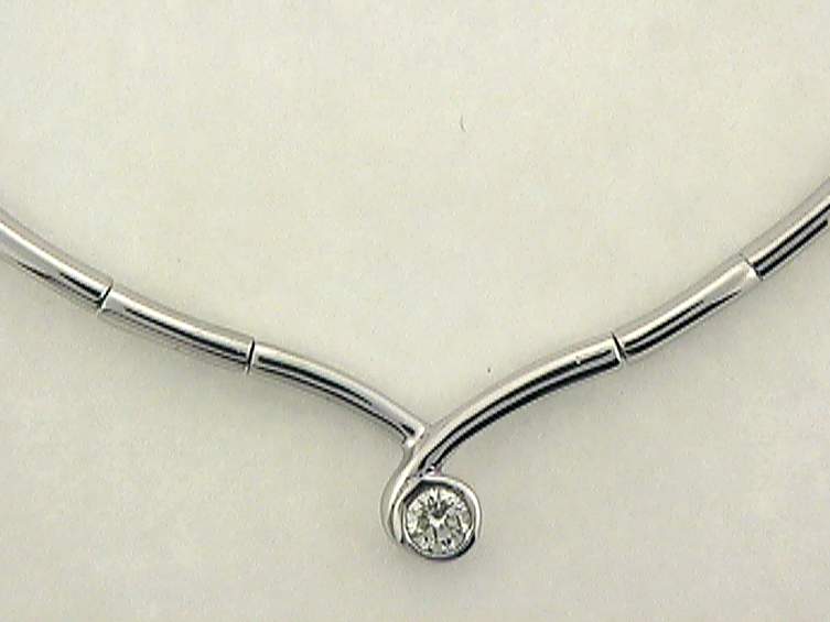 14K WHITE GOLD NECKLACE WITH .36CT ROUND SHAPE DIAMOND SET IN BAZEL SETTING.