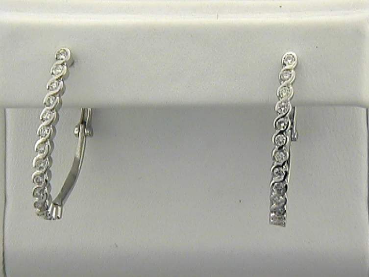 14K WHITE GOLD EARRING WITH .75CT ROUND SHAPE DIAMOND SET IN BEZEL SETTING.