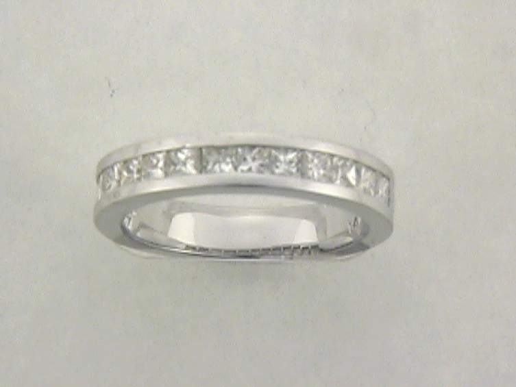14K WHITE GOLD BAND WITH 1CT PRINCESS CUT DIAMOND SET IN CHANEL SETTING.
