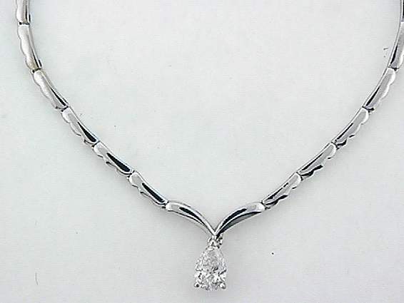 14K WHITE GOLD NECKLACE WITH 1.01CT PEAR SHAPE DIAMOND SET IN PRONGES SETTING.