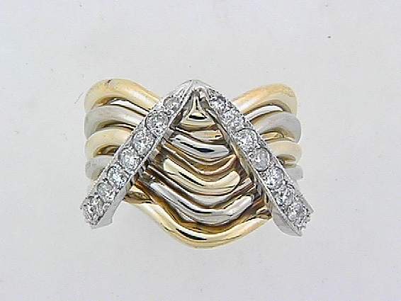 14K WHITE AND YELLOW GOLD RING WITH .90CT ROUND SHAPE DIAMOND SET IN PAVE SETTING.