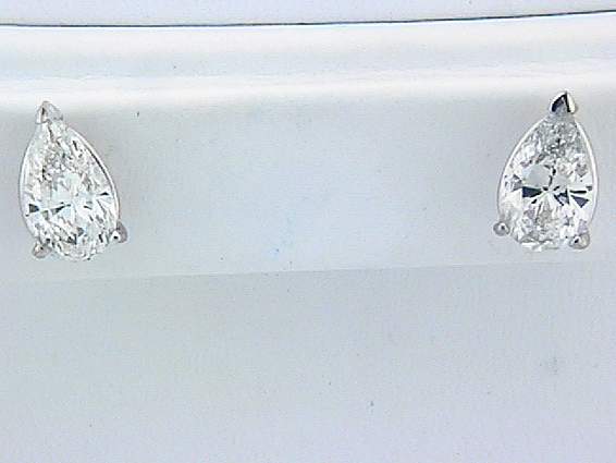 14K WHITE GOLD EARRING WITH 3.05CT PEAR SHAPE DIAMOND SET IN THREE PRONGS V SHAPE SETTING.
