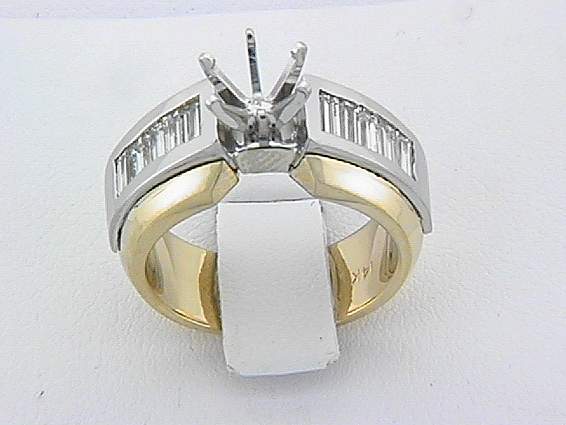 14K WHITE AND YELLOW GOLD RING WITH 1CT BAGUETTE DIAMOND SET IN CHANEL SETTING.