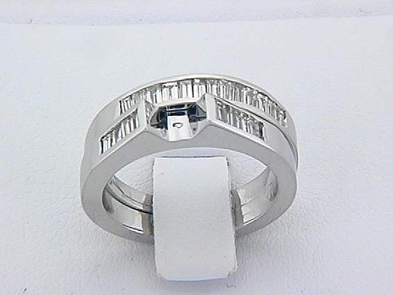 14K WHITE GOLD ENGAGEMENT SET WITH 1CT BAGUETTE DIAMOND SET IN CHANNEL SETTING.