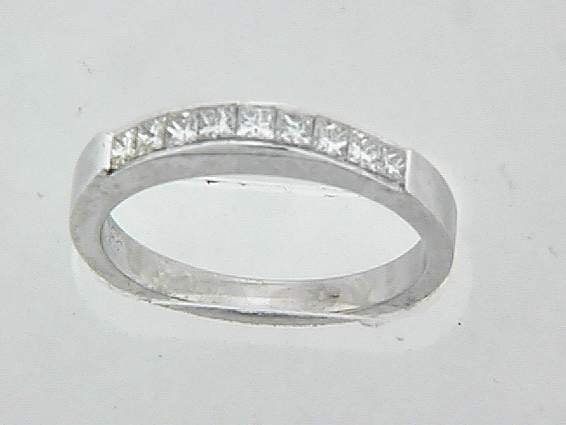 PLATINUM BAND WITH .50CT PRINCESS CUT DIAMOND SET IN INVISIBLE SETTING.