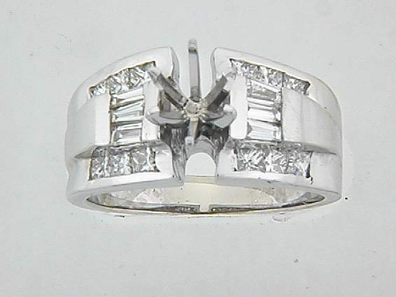 14K WHITE GOLD RING WITH .35CT BAGUETTE .85CT PRINCESS CUT DIAMOND SET IN CHANNEL SETTING.