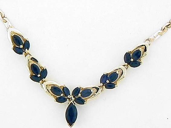 14K YELLOW GOLD NECKLACE WITH 2CT MARQUISE SHAPE SAPPHIRE.