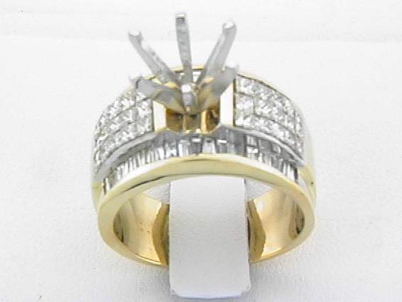 18K YELLOW GOLD RING WITH 1.10CT BAGUETTE, 1.20CT PRINCESS CUT DIAMOND SET IN CHANNEL AND INVISIBLE SETTING.
