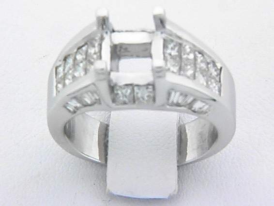 18K WHITE GOLD RING WITH 1CT BAGUETTE , 1.30CT PRINCESS CUT DIAMOND SET IN CHANNEL AND INVISIBLE SETTING.