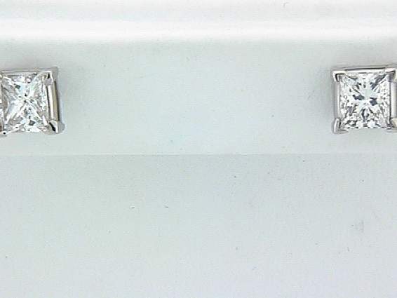 14K WHITE GOLD STUD EARRING WITH 2CT PRINCESS CUT DIAMOND SET IN PRONGS SETTING.