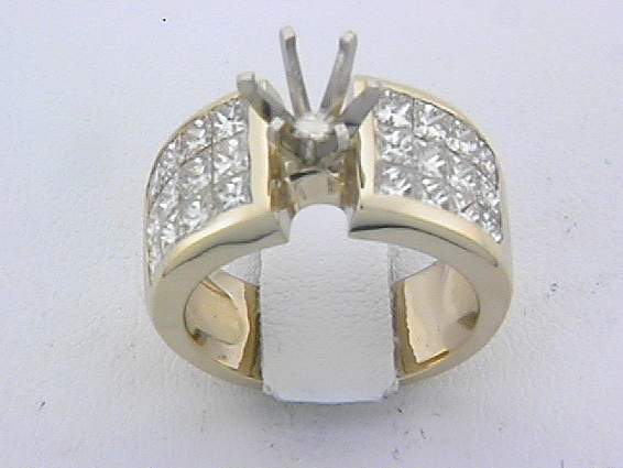 14K YELLOW GOLD RING WITH 2.70CT PRINCESS CUT DIAMOND SET IN INVISIBLE SETTING.