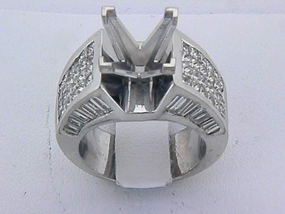 18K WHITE GOLD RING WITH 2CT PRINCESS CUT DIAMOND, AND 1.10CT BAGUETTE DIAMOND SET IN CHANNEL AND INVISIBLE SETTING.