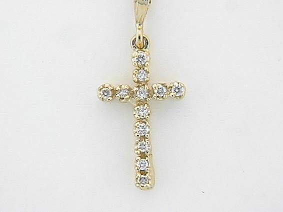 14K YELLOW GOLD CROSS PENDANT WITH .25CT ROUND SHAPE DIAMOND SET IN FOUR PRONGS SETTING.