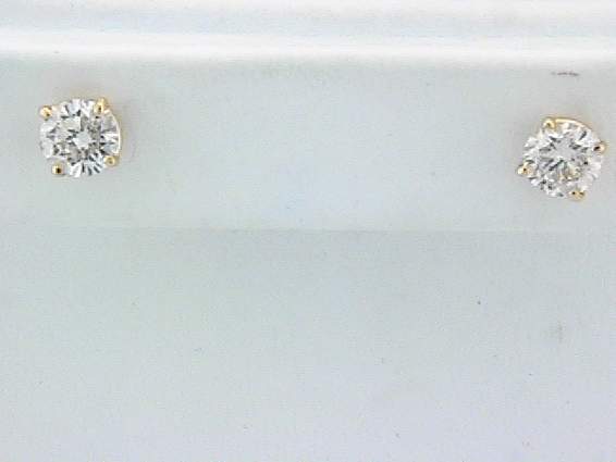 14K YELLOW GOLD STUD EARRING WITH 1.45CT ROUND SHAPE DIAMOND SET IN FOUR PRONGS SETTING.