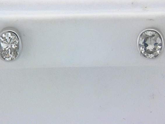 14K WHITE GOLD EARRING WITH 1.85CT OVAL SHAPE DIAMOND SET IN BEZEL SETTING.
