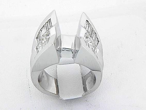 18K WHITE GOLD RING WITH 1.20CT PRINCESS CUT, 1.90CT BAGUETTE DIAMOND SET IN CHANNEL AND INVISIBLE SETTING.