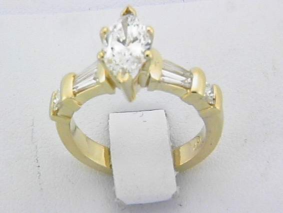 18K YELLOW GOLD LADIES RING HAND MADE WITH .70CT VS2,G,F ROUND AND BAGUETTE DIAMOND SET IN CHANNEL SETTING. CENTER OF 1.53CT VS2,D MARQUISE SHAPE DIAMOND MEAS.:11.12X6.18X3.75MM, EGL#US70833912D.