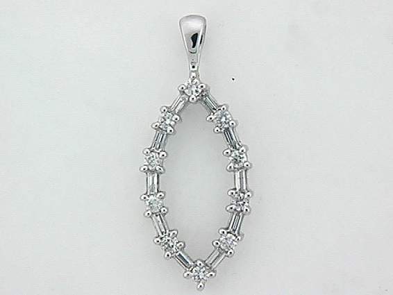14K WHITE GOLD PENDANT WITH .60CT BAGUETTE AND ROUND SHAPE DIAMOND SET IN PRONGS AND CHANNEL SETTING.