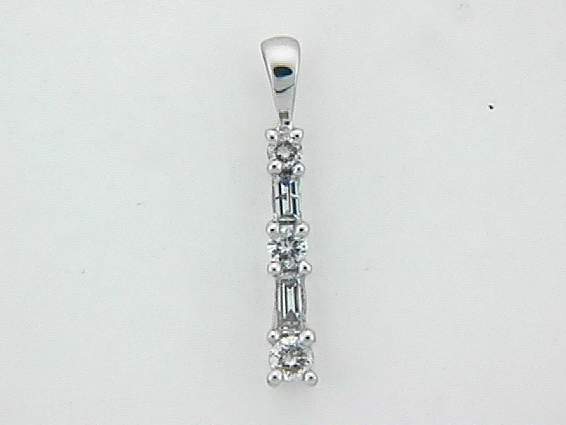 14K WHITE GOLD PENDANT WITH .30CT BAGUETTE AND ROUND SHAPE DIAMOND SET IN PRONGS SETTING.