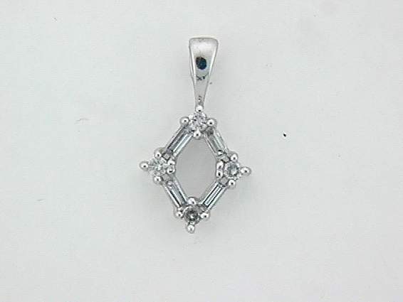 14K WHITE GOLD PENDANT WITH .20CT BAGUETTE AND ROUND SHAPE DIAMOND SET IN CHANNEL AND PRONGS SETTING.