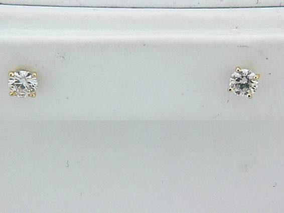 14K YELLOW GOLD STUD EARRING WITH .61CT ROUND SHAPE DIAMOND SET IN FOUR PRONGS SETTING.