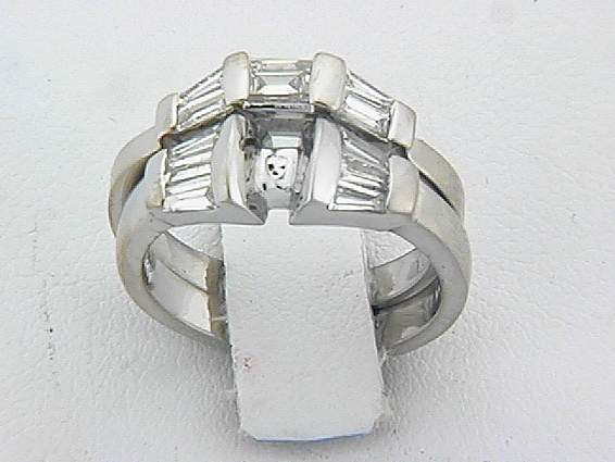14K WHITE GOLD ENGAGEMENT SET WITH .90CT BAGUETTE DIAMOND SET IN CHANNEL SETTING.