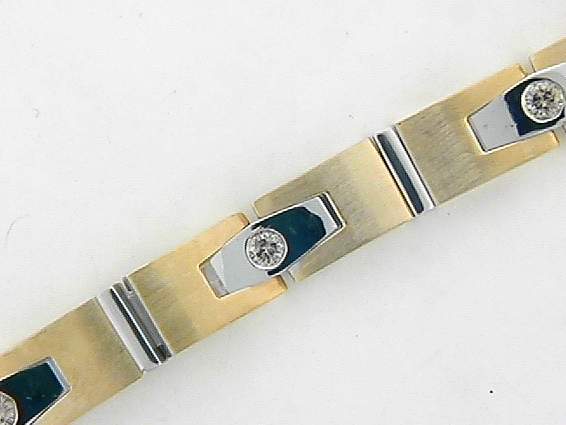 14K WHITE AND YELLOW GOLD BRACELET WITH 1CT ROUND SHAPE DIAMOND SET IN BEZEL SETTING.