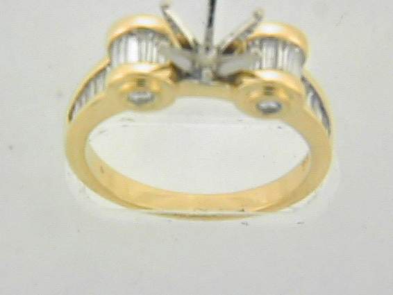 18K YELLOW GOLD RING WITH 1CT BAGUETTE DIAMOND, .12CT ROUND SHAPE DIAMOND SET IN CHANNEL AND BEZEL SETTING.