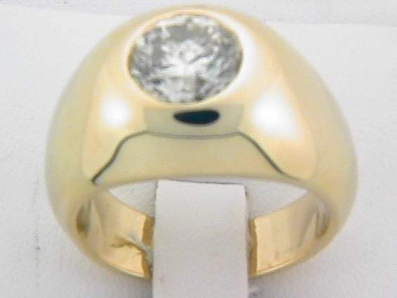 14K YELLOW GOLD MEN’S RING WITH 3.35CT ROUND SHAPE DIAMOND SET IN BEZEL SETTING.