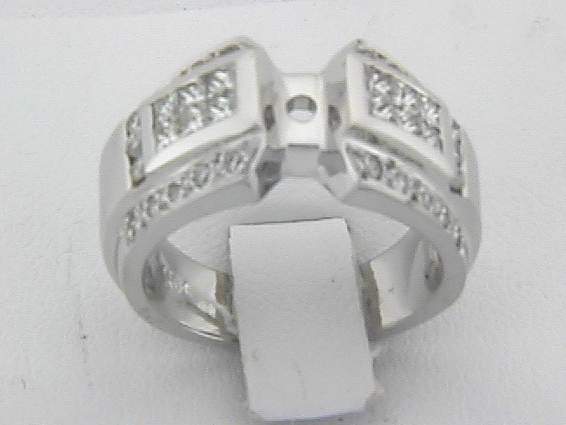 18K WHITE GOLD RING WITH .70CT PRINCESS CUT DIAMOND SET IN INVISIBLE SETTING, .45CT ROUND SHAPE DIAMOND SET IN PAVE’ AND CHANNEL SETTING.