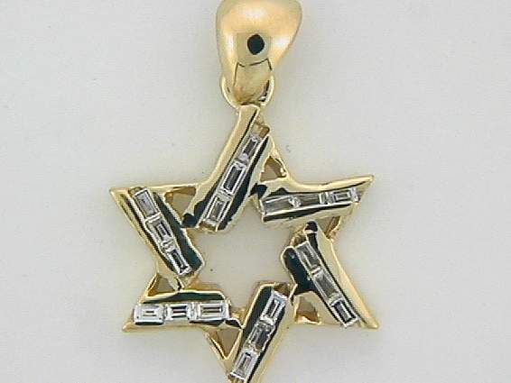 14K YELLOW GOLD PENDANT WITH .50CT BAGUETTE DIAMOND SET IN CHANNEL SETTING.