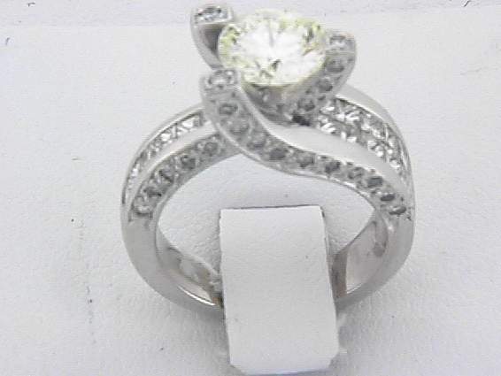 18K WHITE GOLD HAND MADE RING WITH 1.10CT PRINCESS CUT DIAMOND SET IN CHANNEL AND INVISIBLE SETTING, .50CT ROUND SHAPE DIAMOND SET IN PAVE SETTING. CENTER OF 1.64CT VS1, LIGHT GREEN DIAMOND SET IN PRONGES SETTING.TOTAL OF 3.24CT DIAMOND.